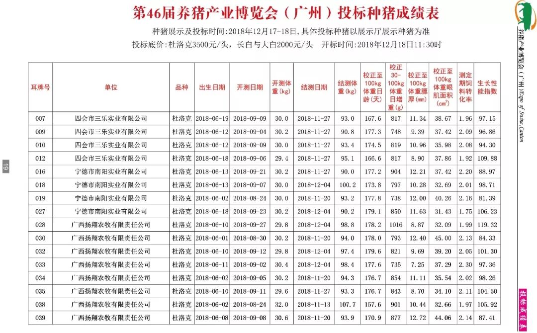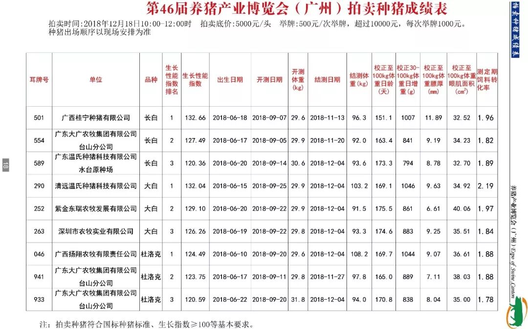 第46届养猪产业博览会(广州)拍卖种猪成绩表(点击可放大)????