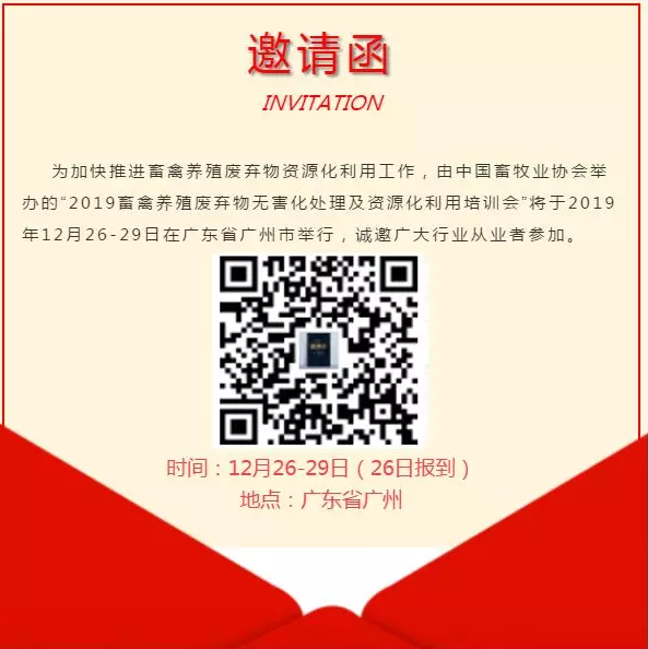 为进一步落实《国务院办公厅关于加快推进畜禽养殖废弃物资源化利用的意见》(国办发〔2017〕48号)文件精神,以“创新、协调、绿色、开放、共享”为理念,以“源头减量、过程控制、末端利用”为治理路径,坚持保供给与保环境并重,全面推进畜禽养殖废弃物资源化利用,构建种养结合、农牧循环的可持续发展新格局,深入贯彻实施乡村振兴战略,落实高质量发展要求,深化畜牧业供给侧结构性改革,推进畜牧业转型升级,加快畜禽粪污资源化利用进程,中国畜牧业协会拟定于2019年12月26-29日在广州举办“畜禽养殖废弃物无害化处理及资源化利用”培训。现将有关事宜通知如下