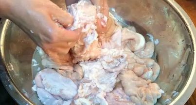 清洗猪大肠时,加盐加碱都是大错特错!小妹觉得用油很不好用,小时候爸爸都是用碱来搓洗,虽然用碱可以洗得很干净,却影响大肠的味道,洗不净会发苦,破坏猪大肠的营养,小妹教大家的方法很简单,是用干面粉+少许的食盐,不要加水,这样干洗,一会儿就搓了满手的脏面粉。