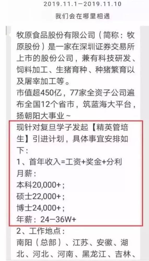 据悉,牧原股份针对知名高校,开出不菲薪酬:本科生20000元/月、硕士22000元/月、博士24000元/月。此次招聘针对的是复旦大学,招聘管培生。