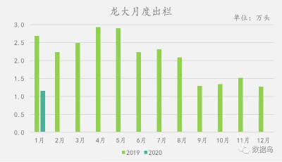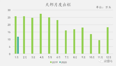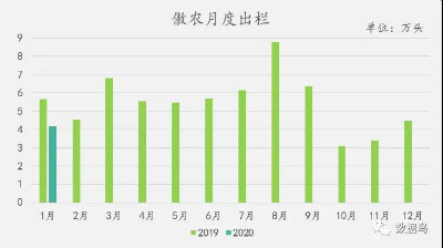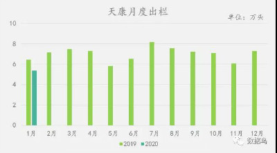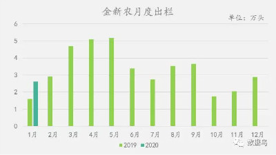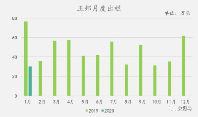注:以上部分上市公司1-2月份为合并出栏数据,单月出栏量的计算方式为1-2月份合并出栏量除以2。