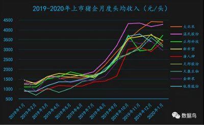 注:图例按本月头均收入高低排序,计算方式为当月生猪销售收入除以当月总出栏头数。