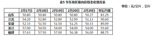 本周华东地区猪肉价格环比略跌。随着中央及地方出台的保障“菜篮子”和企业复产复工系列政策的贯彻落实,生猪调运情况好转,前期压栏生猪集中出栏,缓解生猪供应压力;同时,北方低价猪肉流入销区市场,高价猪肉成交订单明显减少,促使华东大部分地区的生猪和猪肉价格同步下跌。