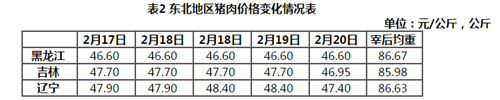本周东北地区猪肉价格环比微跌。周初,屠宰企业因猪肉销售情况较差,开工率长期低位运行,生猪、猪肉价格下跌;随着本地大体重生猪外调南方数量增多,散养户惜售情绪渐浓,生猪出栏积极性减弱,支撑生猪、猪肉价格企稳,仅辽宁省个别企业的猪肉价格小幅上涨;周末,东北地区的交通运输进一步通畅,生猪出栏量增多,价格下跌,带动猪肉价格小幅下跌。