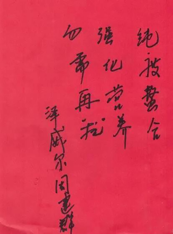 ▲周总给绿色无抗饲料齐鲁行题词为:纯度螯合 强化营养 勿需再抗
