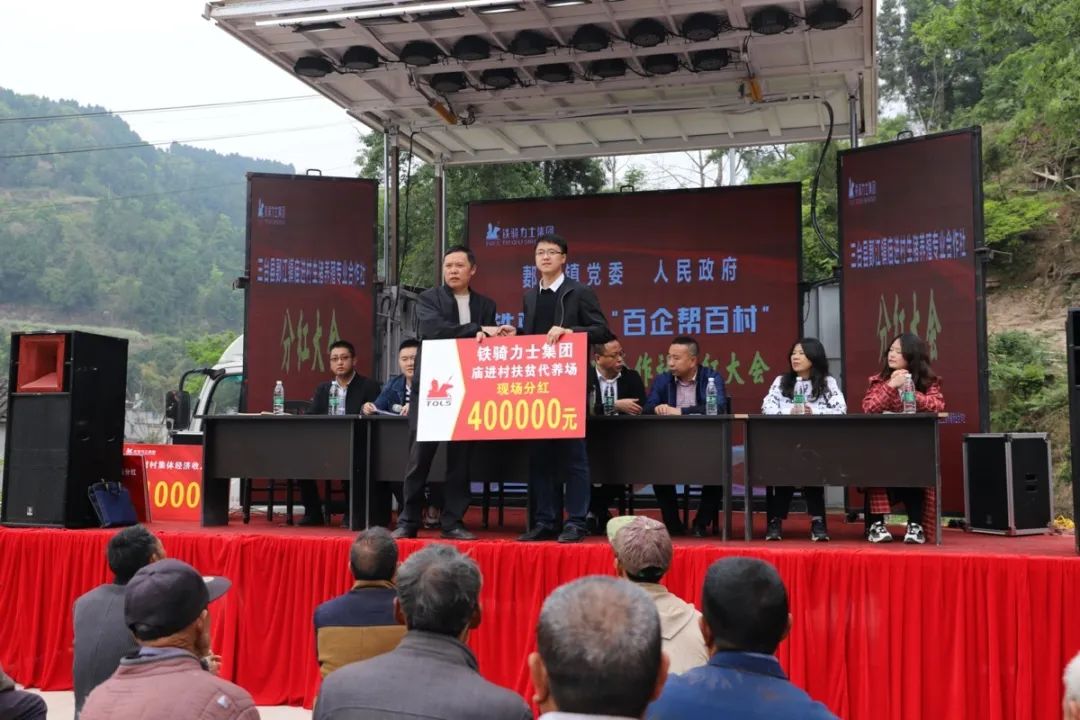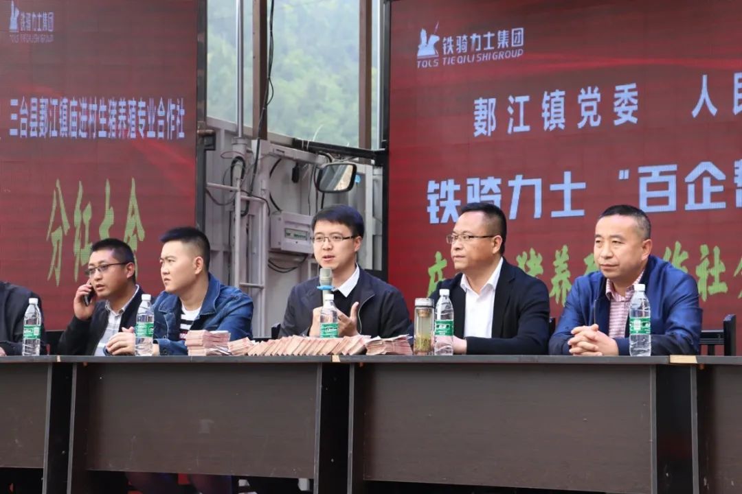 4月16日,铁骑力士“百企帮百村” 三台县郪江镇庙进生猪养殖合作社分红仪式在庙进村隆重举行,扶贫攻坚指挥部魏主任、县农业农村局罗主任、郪江镇党委政府等领导全程参会,铁骑力士集团猪业事业部绵阳区域公司总经理李豪代表公司出席会议。