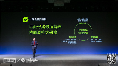 接下来,刘总系统讲解了新逻辑营养率先提出的营养逻辑学理论,这一理论致力于建立科学的营养模式,破解不确定的难题,构建确定的营养竞争力。并随后发布了基于营养逻辑学研究出的全新大采食教槽技术,重新定义了教槽采食量标准,科学且有力的解决了仔猪断奶后4-5天最容易出现问题时段的养殖难题。系统激发采食潜能,保障仔猪持续抢食,为教槽料注入持续的营养竞争力。