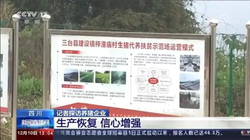 2019年非瘟严峻时期,为落实生猪生产恢复情况,央视新闻频道记者于12月9日下午探访四川养猪市场,便对绵阳三台县铁骑力士代养户李海蓉养殖场的生产情况进行了电话视频采访,详细询问了李海蓉养殖场的规模、存栏及非瘟防控措施。