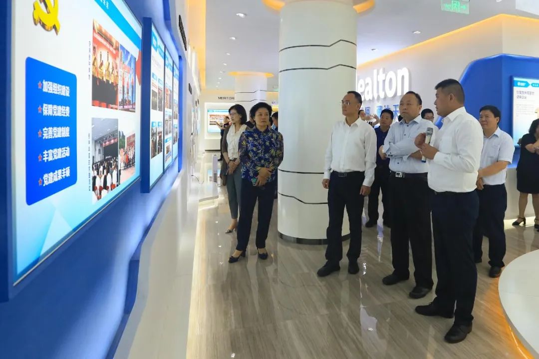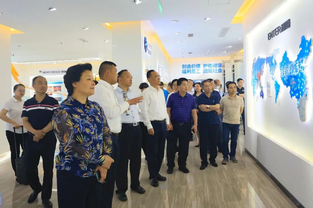 5月27日,重庆市荣昌区人大常委会主任艾亚军率领的荣昌区人大常委会考察团在内江考察交流,内江市人大常委会主任、党组书记戴震,市人大常委会副主任、党组副书记刘英全程陪同。下午,考察团莅临恒通动保考察企业创新发展情况。董事长郭亮热情接待了来宾,并在观看企业宣传片之后,在荣誉室向来宾们详细介绍了企业创新发展历程和未来发展规划。艾亚军主任对恒通动保在智能工厂、研发投入、产品创新等方面取得的成绩给予了充分评价,对企业的“三像文化”表示高度的认同和称赞,并鼓励企业取得更加优异的成绩。