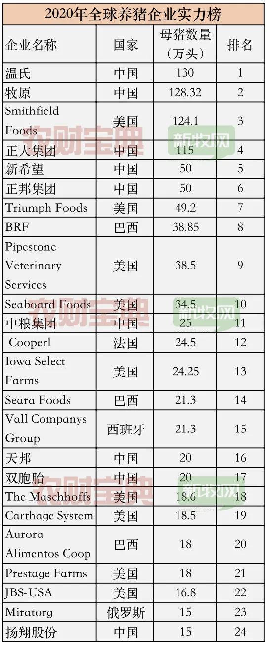 全球养猪企业实力榜公布!温氏母猪存栏130万、牧原128万!中国猪企再砸上100亿扩张产能!