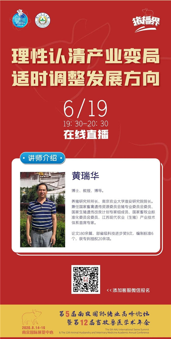 南农国际猪业高峰论坛特推出免费公益直播课“猪播界”,首播课特邀养猪研究所所长黄瑞华教授!