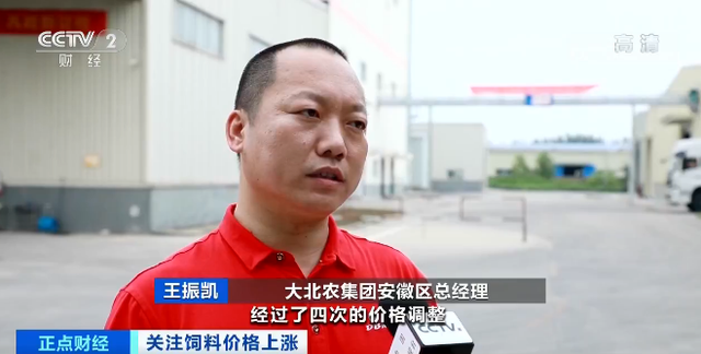 大北农集团安徽区总经理 王振凯:今年,配合饲料经过了4次价格调整,其中有3次涨价,1次降价。整体的价格上涨大概在100到200元每吨之间,根据品类的不同,也有达到300元每吨的。