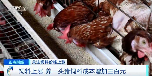 安徽蚌埠猪场养殖户 易开封:成本的话养出来一头猪,大概增加三百元钱左右的成本。 养殖户告诉记者,像2017年肉价便宜时,一头猪的利润仅有300元。今年得益于肉价较高,每头猪的利润有2000元钱,因此饲料的上涨还在能接受的范围内。而另一边,蛋鸡和肉鸡养殖户就没那么乐观了。杨中卫是当地的一位饲料经销商,他告诉记者,目前肉鸡和蛋鸡养殖户使用饲料的成本每斤至少增加一毛多。