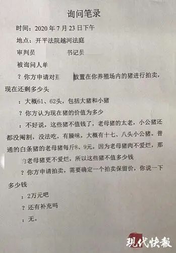 值得注意的是,这62头生猪养殖时间均在10个月以上。在拍卖公告中,还特地标注了“瑕疵说明:大猪养殖时间在二年以上。”为什么大猪养殖两年以上是瑕疵品呢?在定价笔录中,申请执行人单某称:“老母猪肉太老,小公猪还没有阉割,有味道。普通白条猪老母猪价格每斤八九元,所以这些猪不值钱。”