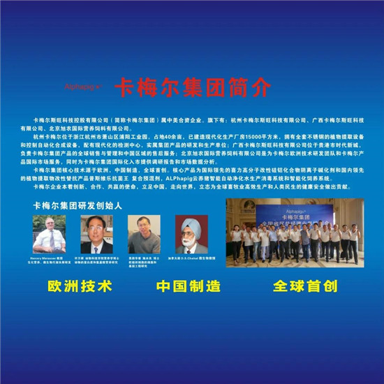 据悉,卡梅尔斯旺科技控股有限公司(简称卡梅尔集团)属中美合资企业。旗下有:杭州卡梅尔斯旺科技有限公司、广西卡梅尔斯旺科技有限公司、北京旭农国际营养饲料有限公司。