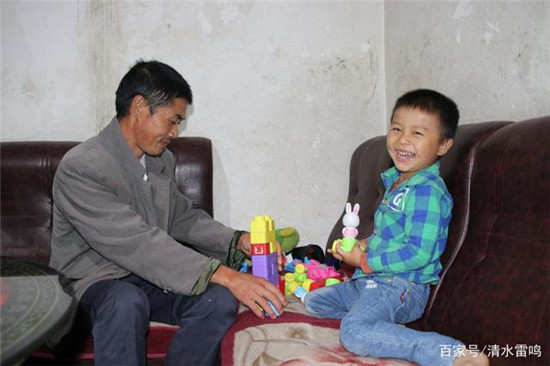 49岁的祝振福和5岁的儿子。祝振福结婚晚,晚来得子,儿子是他的掌中宝。