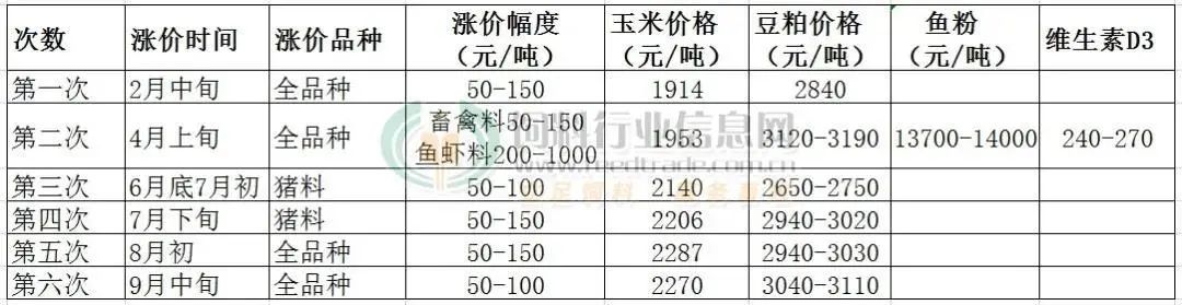 8月,央视已多次报道了饲料企业集体涨价的情况,但玉米豆粕价格依然在上涨,成本压力上升,9月中旬,饲料企业再次宣布涨价。