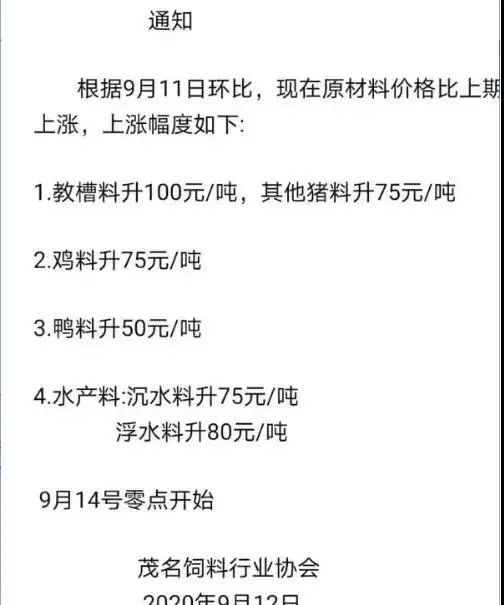 继9月14日茂名饲料行业协会引领了本年度内的第6次饲料涨价,涉及猪、鸡、鸭、水产等品种,涨幅在50-100元/吨。其后果不其然,新希望、傲农、九鼎等企业后来居上。