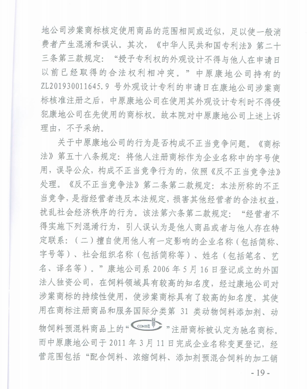 2019年12月19日,猪易传媒报道了康地饲料(中国)有限公司被某饲料企业商标侵权一事,引起了业内同仁的格外关注,当时法院给出的公正裁决,亦是让“假康地”无所遁形!但正可谓“树大招风”,对“康地”这课大树觊觎已久的,可不止一个。近日,又有一场“真假康地”之争,在经历了近半年的“恩怨纠葛”及初审、二审后,终审落下帷幕。而结果,依旧是以“真康地”——康地饲料(中国)有限公司大获全胜而告终!依据法院终审判决,侵权方被判处立即更名,停止侵权!