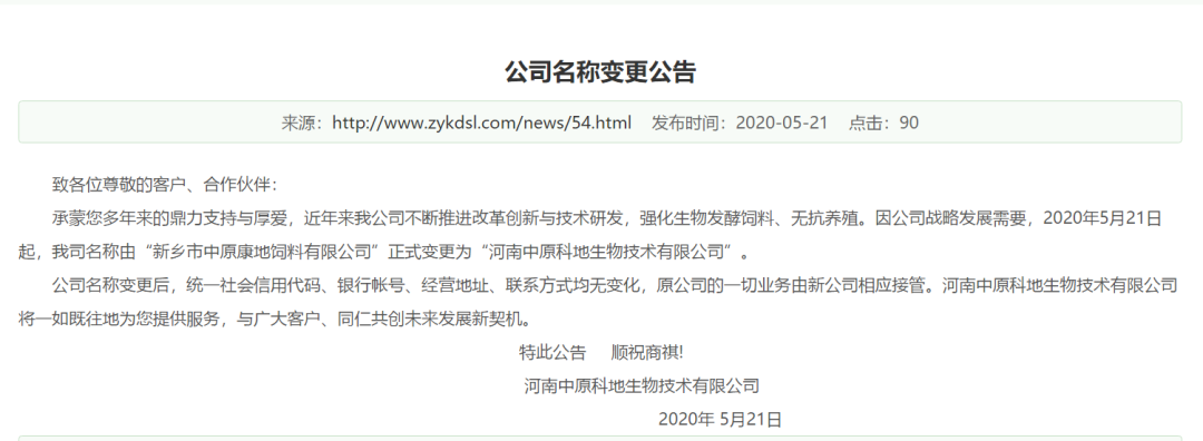 3、中原康地已发布公司名称变更声明