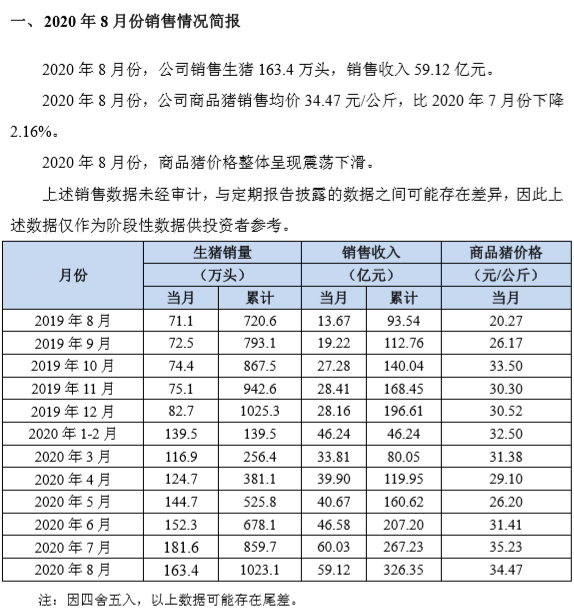 虽然各大生猪养殖企业的9月销售简报尚未披露,但根据7、8两月的销售数据,以及已披露的三季报业绩预告等相关数据进行判断,主营“二师兄”养殖的上市公司将在国庆假期后交出一份靓丽的季报成绩单。