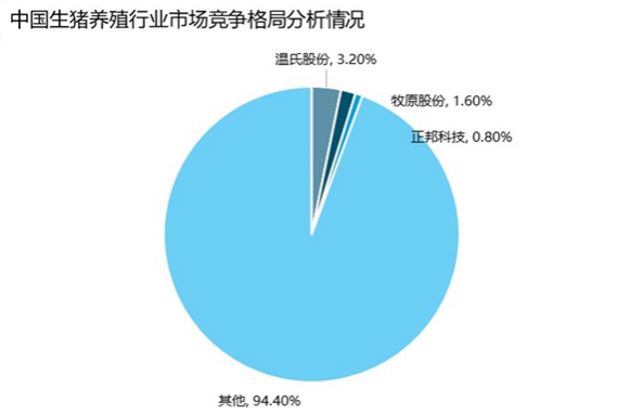 根据锐观咨询统计的数据显示,当前中国生猪养殖行业市场之中,行业龙头温氏股份、牧原股份及正邦科技总共只占据了整个市场的5.6%,而高达94.4%的市场仍然是由其他中小散户所占据。这表明了当前国内的生猪养殖行业集中度极低,互联网巨头要想进入形成规模化养殖将面临着较大的竞争。