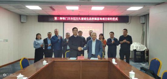 仪式上,二师二十一团与北京幸汇农业科技有限公司签署了百万头雷猪生态养殖基地项目合作协议,此项目的成功签约,标志着幸汇农业科技有限公司百万头雷猪分布式种养一体化项目在二师全面启动落地。