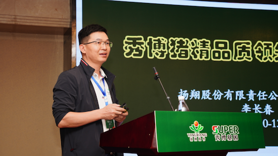扬翔股份生产总监、华中农业大学教授、博士李长春先生从公猪健康、猪精安全、基因组育种、公猪性能、精液质量管理、猪精在母猪场的使用效果六个方面做《秀博猪精品质领先解决方案》主题报告。