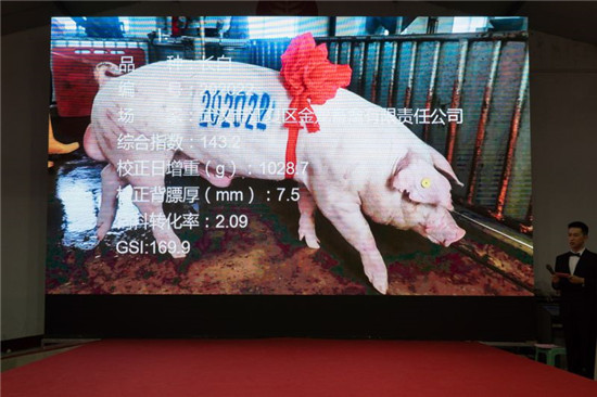 全国种猪大赛(湖北赛区)暨第二十届中国武汉种猪拍卖会是2020年中国农民丰收节的系列活动,共收测了来自江西、湖北11家种猪企业送测的186头种公猪。种猪测定中心在相同环境、相同设备和相同饲养管理条件下,经过近4个月的科学测定,遴选出16头特优级种公猪公开拍卖,102头优级种猪参加暗标竞购。