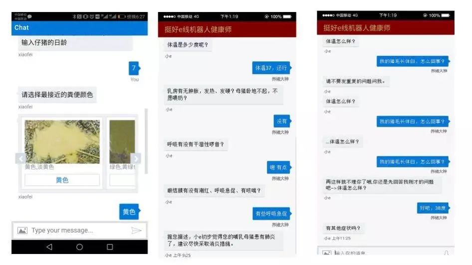 现阶段,机器人健康师板块涵盖了看猪病、查猪瘟、选产品、观天气等多个功能,并同时支持多种语言系统。在疾病问诊的过程中,养殖户不仅能从中得到相应的诊断结果,还会获得关于疾病“常识”“预防”“用药”“食疗”等方面的专业指导建议。