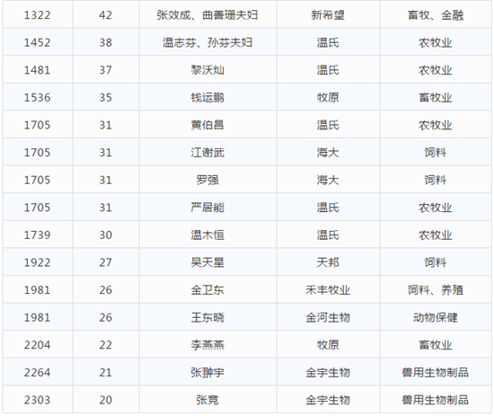 除了秦英林、钱瑛夫妇,牧原上榜的还有钱运鹏、李燕燕,他们的身家分别达到35亿和22亿。而温氏的上榜人数达到9人,是不折不扣的第一造富猪企,其中温鹏程家族以150亿排名350位。