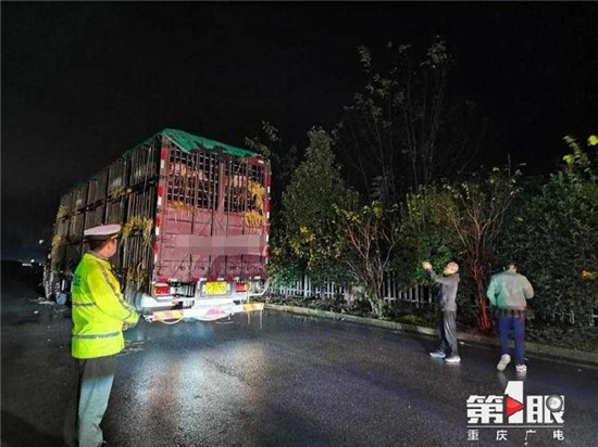 第1眼-重庆广电消息,11月1日晚,重庆市交通运输综合行政执法总队高速公路第三支队三大队执法人员在G5515黔恩高速公路舟白服务区查获一辆非法运输生猪的大货车。