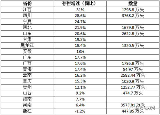 而从已公布省份前三季度生猪存栏数据来看,除了浙江小幅减少(-1.2%)之外,其余所有省份都实现了正增长,其中江西增长最快,达到31%,大多数省区市基本提前完成了年度生猪生产任务。