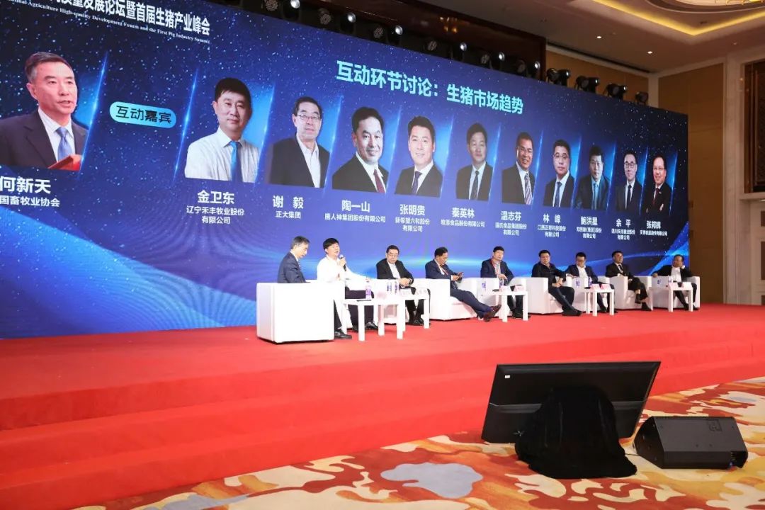 中国畜牧业协会何新天秘书长主持“生猪市场趋势”互动论坛。唐人神集团股份有限公司董事长陶一山,辽宁禾丰牧业股份有限公司董事长金卫东,双胞胎(集团)股份有限公司董事长鲍洪星,江西正邦科技股份有限公司董事长林峰,新希望六和股份有限公司执行董事长/总裁、党委书记张明贵,正大集团资深执行副总裁兼农牧食品企业中国区资深副董事长谢毅,四川天兆猪业股份有限公司董事长余平,天邦食品股份有限公司创始人、监事会主席张邦辉就“新形势下牧企业应该‘怎么看、怎么干’”分别发言,与参会代表进行了近距离交流。