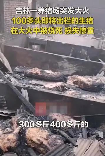 11月14日,吉林长春一家养猪场突发大火,100多头即将出栏的生猪被活活烧死,损失惨重。据悉,厂内的每头猪都有300-400斤,这损失可是不下百万。对于厂内的起火原因还未透露,不论怎么说这种损失不是一般的农户能承受的起的。