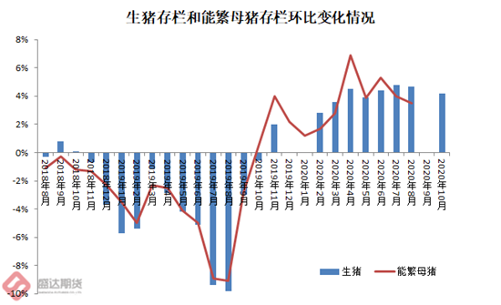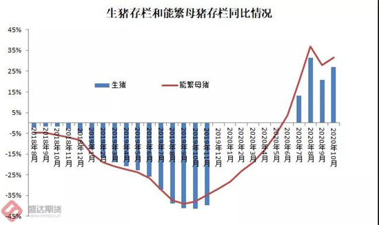 据农业农村部消息,10月份能繁母猪存栏3950万头,连续13个月增长,比去年同期增长32%;生猪存栏3.87亿头,连续9个月增长,比去年同期增长27%。目前生猪产能已经恢复到2017年年末的88%左右。照此趋势,明年二季度,全国生猪存栏将基本恢复到正常年份的水平。