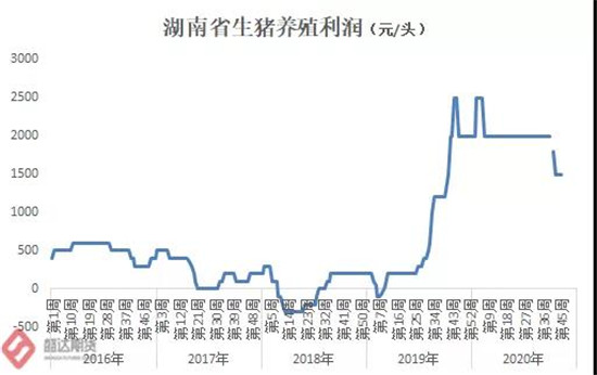 据湖南省监测:2020年第45周,养殖户出栏生猪头平盈利1500元以上。