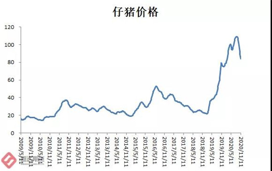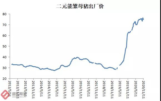 据中国政府网数据:截至2020年11月11日,二元母猪价格75元/公斤,环比回落0.79%;较年内高点75.8元/公斤回落1.06%。同比涨20.62%。据悉,目前三元母猪占比仍高达4成以上,因生产性能差异;行业正逐步向二元母猪回归,因此二元母猪价格仍处于高位,回落速度明显低于生猪、仔猪。
