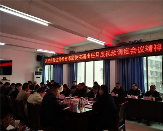 兴文县就贯彻落实本次会议精神立即召开专题会议,会议要求:各乡镇一要及时监测,"两手抓,两促进",即一手抓出栏,促补栏,一手抓防疫,促生产,以确保兴文县年底生猪存栏达38万头以上;二要对照目标添措施补短板,千方百计完成今年目标任务;三要加大通报考核,全面压实责任。