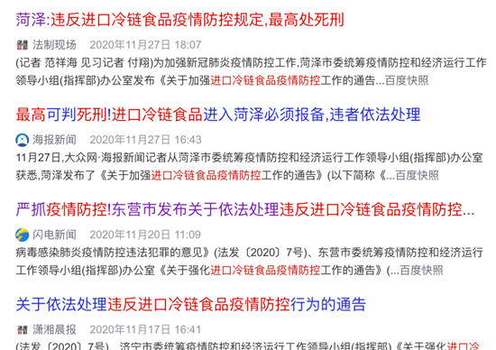 近日,市场监管总局表示,进口冷链食品无核酸检测报告不得上市。而山东省多市发布《关于依法处理违反进口冷链食品疫情防控行为的通告》表示,违反进口冷链食品疫情防控规定,最高处死刑。