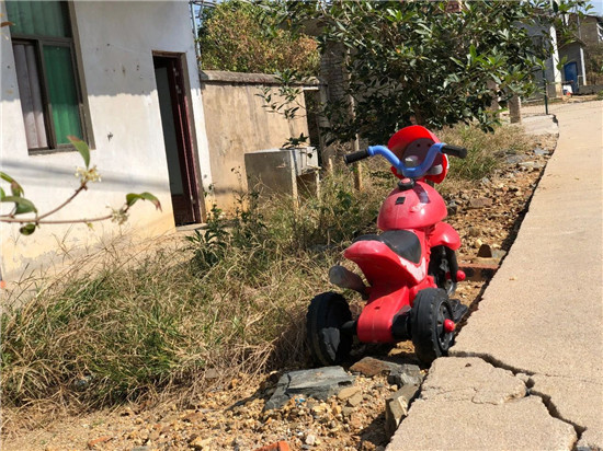 猪场员工孩子留下的儿童车还在,但人已不见踪影
