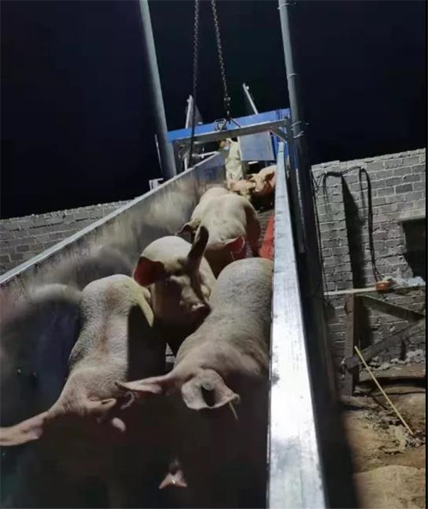 生猪由专用通道进入猪舍