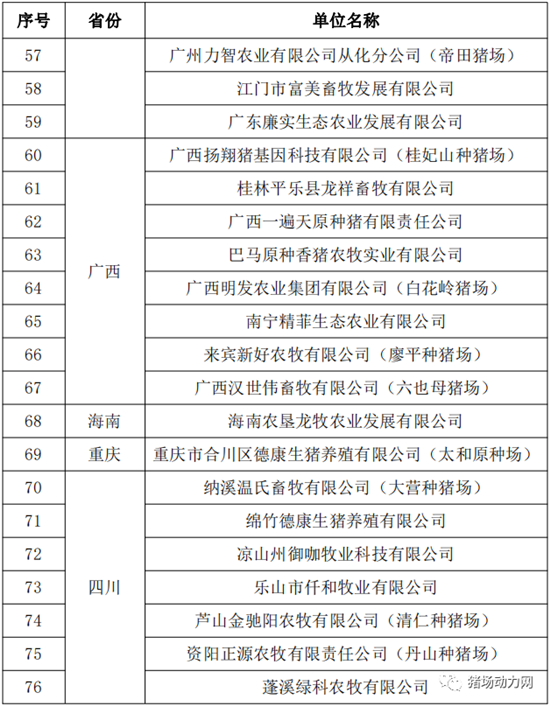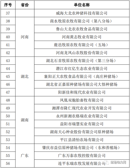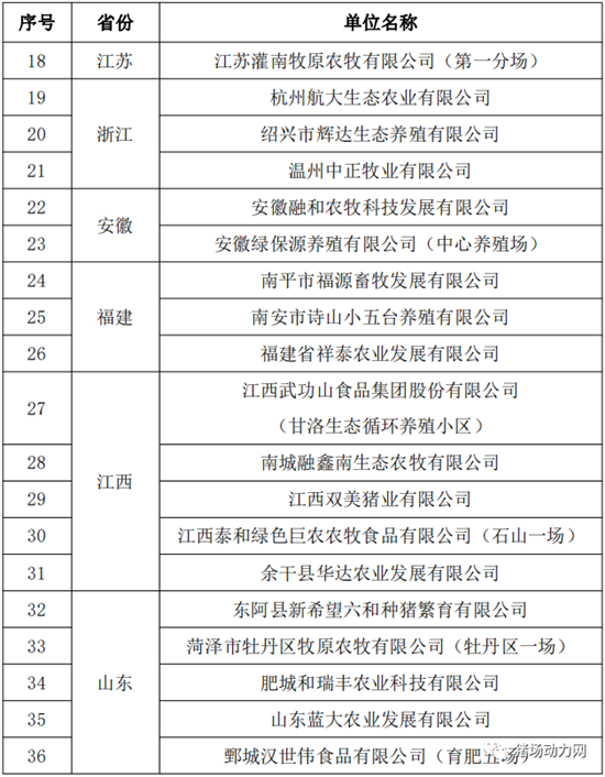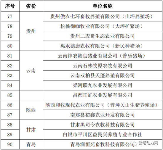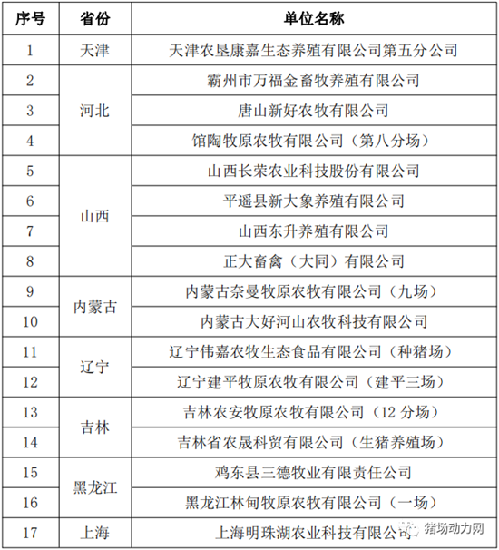 2020年农业农村部畜禽养殖标准化示范场名单(生猪)