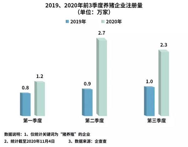 图2.2019年、2020年前3季度养猪企业注册量