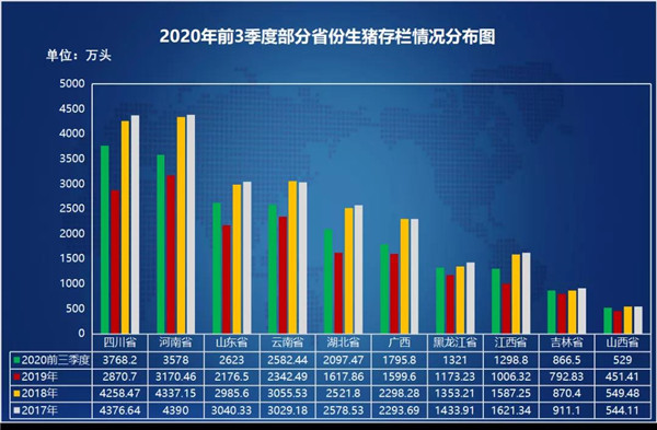 图4.2020年前3季度部分省份生猪存栏情况分布图