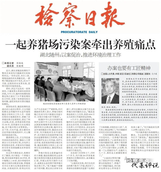 随县检察院办理均川镇养猪场公益诉讼案时,不局限于就案办案,而是站在服务大局的高度去推动解决全县养殖场普遍存在的污染问题,这体现的就是工匠精神。希望随县检察院面对社会综合治理的新情况、新挑战,始终弘扬工匠精神,积极回应人民群众新期待,推动社会高效运行。