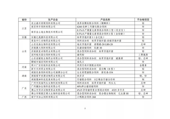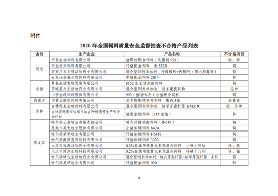 附件:2020年全国饲料质量安全监督抽查不合格产品列表