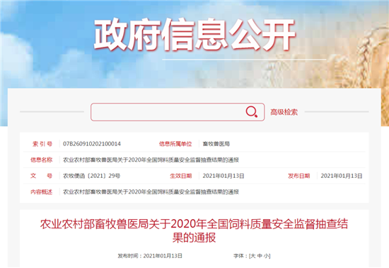 为加强饲料质量安全监管,保障动物产品质量安全,按照《农业农村部关于印发2020年饲料兽药生鲜乳质量安全监测计划的通知》(农牧发〔2020〕8号)要求,我局组织开展了全国饲料质量安全监督抽查工作,现将监督抽查结果通报如下。