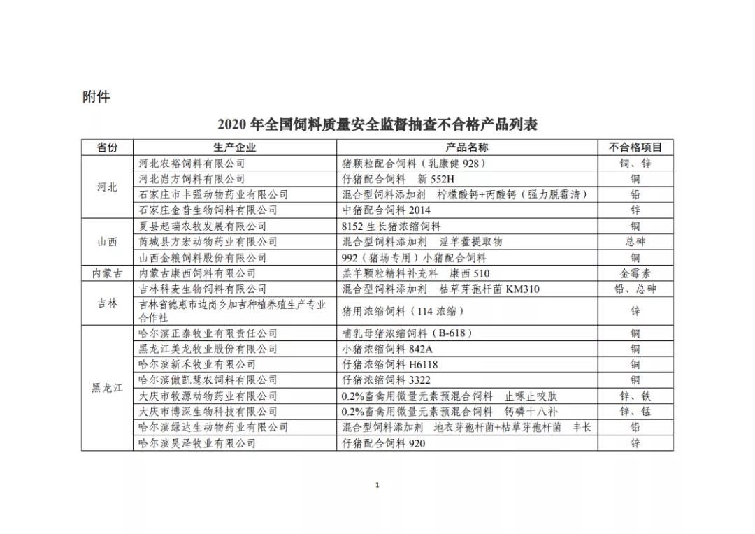 为加强饲料质量安全监管,保障动物产品质量安全,按照《农业农村部关于印发2020年饲料兽药生鲜乳质量安全监测计划的通知》(农牧发〔2020〕8号)要求,我局组织开展了全国饲料质量安全监督抽查工作,现将监督抽查结果通报如下。