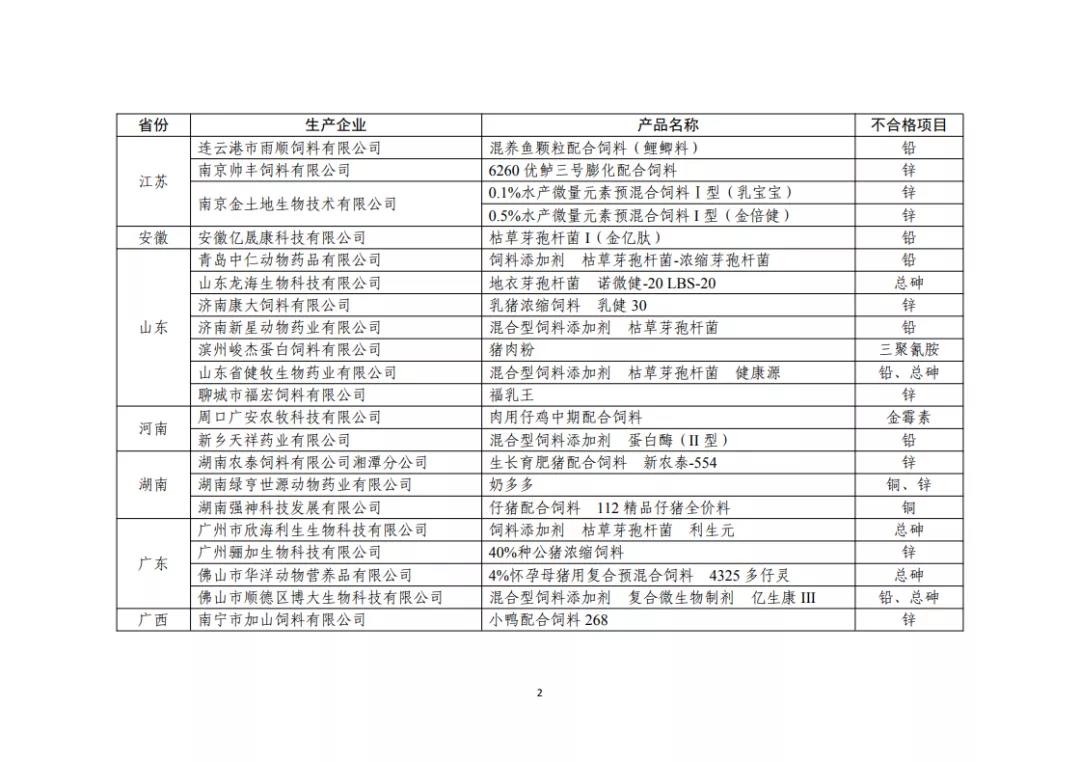 此次监督抽查共抽检各类商品饲料样品2349批次,总体合格率98.1%。其中,配合饲料1016批次,合格率98.6%;浓缩饲料312批次,合格率97.1%;精料补充料62批次,合格率96.8%;宠物饲料53批次,合格率100%;添加剂预混合饲料332批次,合格率97.9%;饲料添加剂133批次,合格率97.7%;混合型饲料添加剂322批次,合格率97.2%;动物源性饲料原料52批次,合格率98.1%;植物源性饲料原料43批次,合格率100%;微生物发酵类单一饲料19批次,合格率100%;矿物质饲料原料5批次,合格率100%。